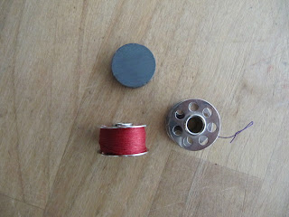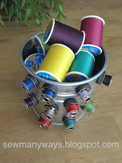 Com um vaso metálico e com imans conseguimos arrumar os nossos acessórios de costura de forma a que estejam sempre visivéis. Como por exemplo as canelas ou bonines.