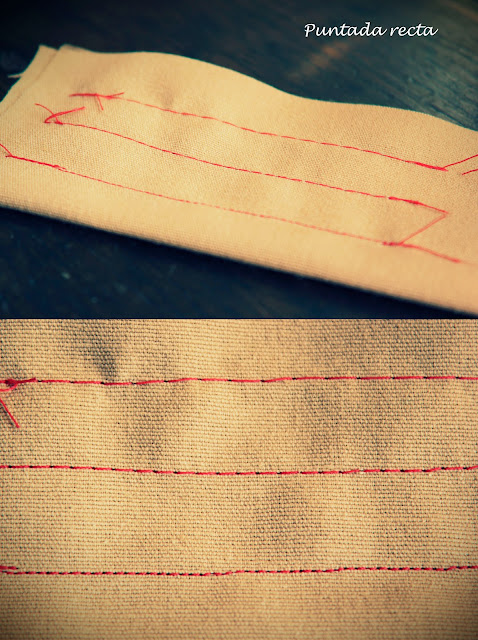 Este ponto é o mais básico em costura. É um conjunto de pontos simples e rectos, onde podemos escolher o tamanho entre os diferentes pontos apesar de a grande maioria dos trabalhos serem executados com um tamanho médio. Para evitar que o ponto se desfaça, tanto no início como no fim deve-se rematar o ponto com a opção "rematar" da máquina de costura.
