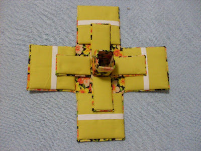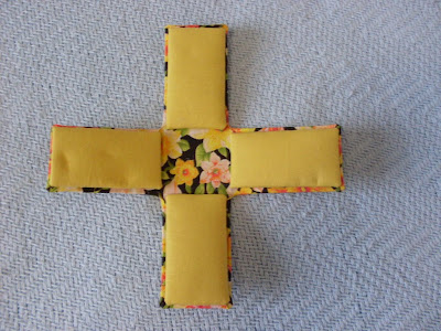 E fazemos mais umas almofadinhas para esta cruz, tal como na anterior usando os quadrados que sobraram de termos cortado.